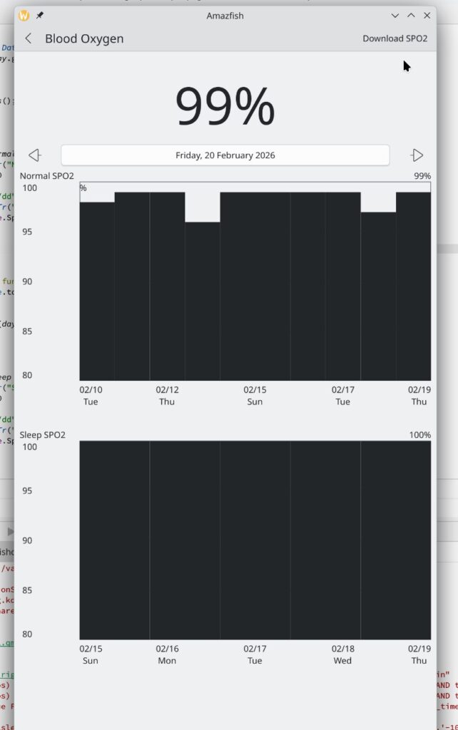 He implemented support for downloading PAI, HRV, temperature, and SpO₂ metrics, including their corresponding graphs. A significant amount of work has been done behind the scenes, and there is a tracking ticket available to follow the progress.