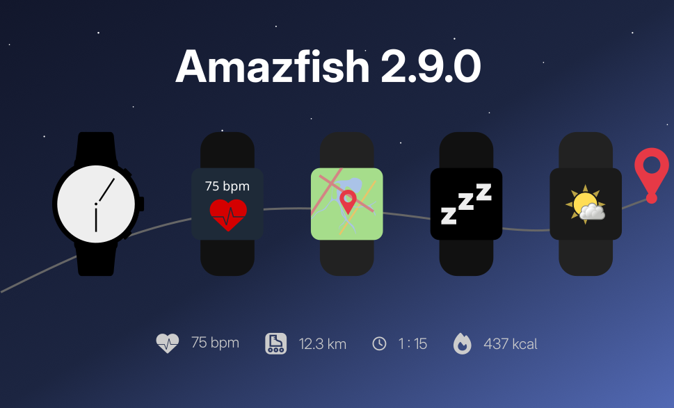 Amazfish 2.9.0 introduces support for newer ZeppOS devices, including the Amazfit GTR 3, along with improved Bangle.js synchronization for steps, sleep, and heart rate. The Sport Summary and Sport Detail pages received major updates, including additional activity icons, activity type editing, and Strava/FitTrackee uploads. PineTime weather now supports sunrise and sunset data. Multiplatform compatibility has been improved, fixing issues on Ubuntu Touch like swipe-to-delete and navigation instructions, while calendar backend were enhanced.