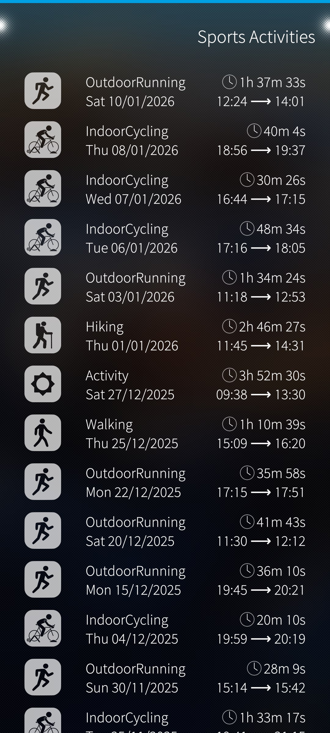 Danfro was not happy with the state of the Sport Summary and Sport Detail pages and proposed several improvements, which led to their current design. At the same time, the new ZeppOS significantly increased the number of supported sports to around 280 (more than in the Olympics!), and the newly implemented Bangle.js synchronization finally gave me enough data to properly test these pages. All of this together made it a good time to focus on improving this part of the application.